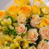 Лента атласная - 1;Современная упаковка - 1;Альстромерия - 4;Роза кустовая пионовидная - 4;Роза Талеа (50см) РОССИЯ - 7;